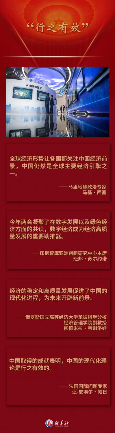 如何推動中國式現(xiàn)代化建設,是國際社會長期關注中國的一大焦點。透過中國全國兩會窗口,國際輿論和海外人士看到,在中國式現(xiàn)代化的道路指引下,中國經(jīng)濟社會發(fā)展取得令人矚目的成績,給世界各國帶來合作共贏的新機遇,中國式現(xiàn)代化為人類實現(xiàn)現(xiàn)代化提供了新選擇,為發(fā)展中國家拓展現(xiàn)代化路徑提供了有益啟示。