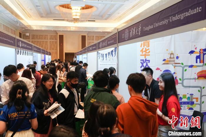 3月17日,展會尚未正式開幕,清華大學等高校展臺前已人頭攢動?!≈行律缬浾?張興龍 攝