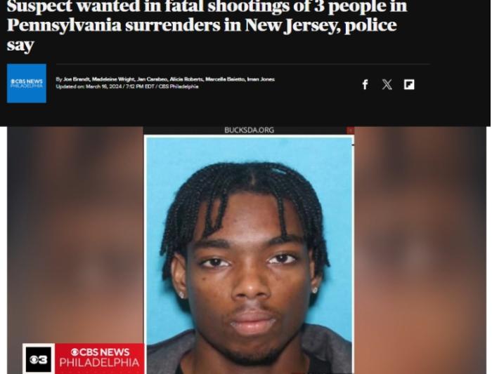 據(jù)報(bào)道,這名26歲的嫌疑人在兩處不同的住宅中殺害了3人,隨后劫持了一名司機(jī)前往新澤西州,最終在新澤西州一處住宅附近被逮捕。報(bào)道稱(chēng),這起槍擊事件的受害人包括嫌疑人的繼母和他13歲的妹妹。