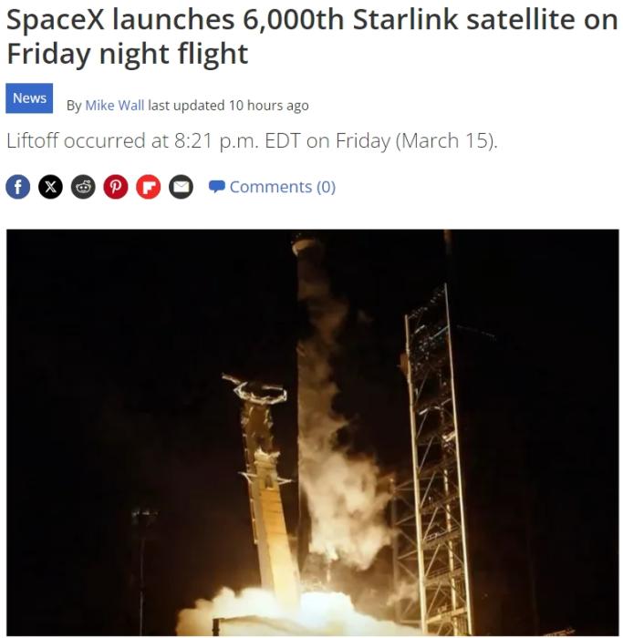 報(bào)道稱,自2019年第一顆“星鏈”衛(wèi)星發(fā)射升空后,此次發(fā)射將部署在太空的“星鏈”衛(wèi)星總數(shù)量增加到6000多顆。