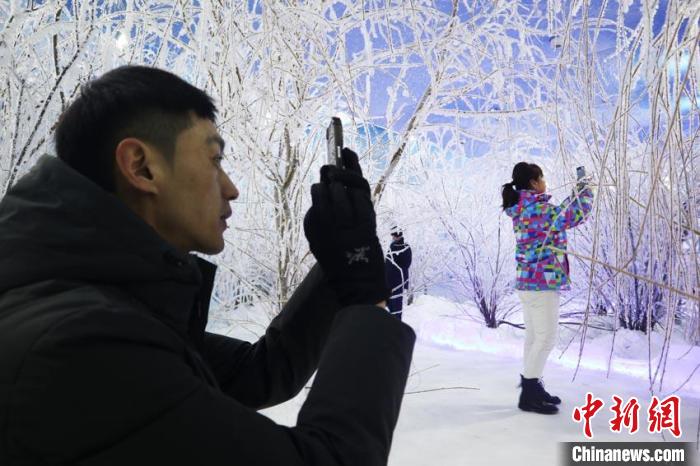 在龐培林看來,室內的霧凇同樣擁有“沉浸式體驗”。他指向噴霧口告訴記者,室內霧凇的形成條件也較為苛刻,制造一場五星霧凇,需要造霧機等設備持續(xù)作業(yè)一天。隨著游客增多,溫度、濕度也會發(fā)生變化,霧凇也會凋謝。