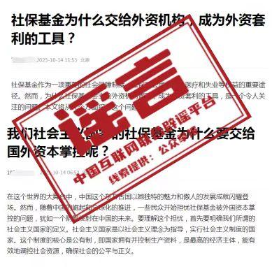 中新網(wǎng)3月18日電 據(jù)“互聯(lián)網(wǎng)聯(lián)合辟謠平臺”微信公眾號消息,近段時間以來,有少數(shù)網(wǎng)絡自媒體發(fā)布視頻稱,我國社會保險基金“幾乎全部交給外資機構(gòu)管理”,且被用于“買賣A股”,質(zhì)疑社保基金成為“外資套利的工具”。經(jīng)中國互聯(lián)網(wǎng)聯(lián)合辟謠平臺向有關(guān)主管部門核實查證,前述言論均為不實信息。