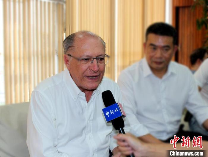 當(dāng)?shù)貢r(shí)間3月16日,巴西圣保羅,巴西副總統(tǒng)兼發(fā)展、工業(yè)與貿(mào)易部長阿爾克明接受中新社記者專訪?!×趾?jiǎn) 攝