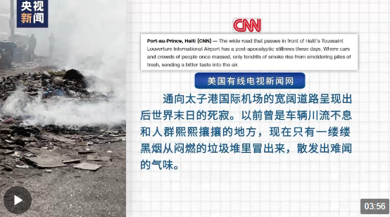 “通向太子港國際機場的寬闊道路呈現(xiàn)出后世界末日的死寂。以前曾是車輛川流不息和人群熙熙攘攘的地方,現(xiàn)在只有一縷縷黑煙從悶燃的垃圾堆里冒出來,散發(fā)出難聞的氣味。”美國有線電視新聞網(wǎng)(CNN)網(wǎng)站18日報道了當(dāng)前海地的混亂局勢。