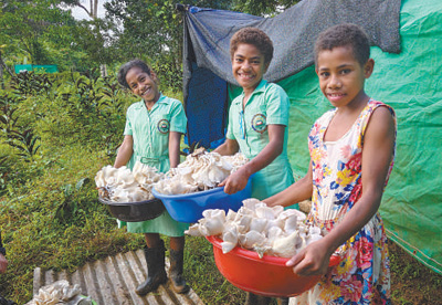 中國(guó)政府面向斐濟(jì)等太平洋島國(guó)推廣菌草技術(shù),推動(dòng)當(dāng)?shù)亟?jīng)濟(jì)發(fā)展,助力當(dāng)?shù)孛裆纳啤D為在斐濟(jì)奈塔希里乳業(yè)婦女組織菌草技術(shù)示范點(diǎn),孩子們正在幫忙采菇。