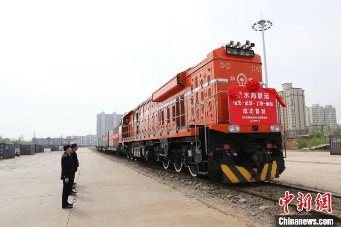 圖為“信陽—武漢—上?!﹪辫F水海聯(lián)運列車在信陽站首發(fā)?!∫τ钕?攝