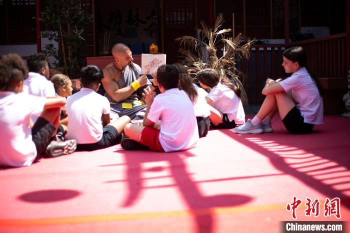 2023年6月8日,白龍向?qū)W生教授武術(shù)知識。 鐘欣 攝