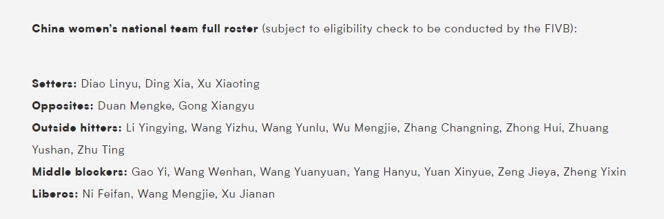 據(jù)悉,該名單還將接受國際排聯(lián)資格審查。具體名單如下: