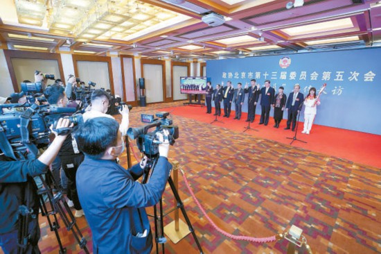 昨天,市政協(xié)十三屆五次會(huì)議舉辦“我是委員”集體采訪。8名委員在現(xiàn)場(chǎng),1名委員通過視頻圍繞“冬奧有我”“科創(chuàng)中心建設(shè)”“履職為民”三個(gè)主題回答記者提問。 本報(bào)記者 方非攝