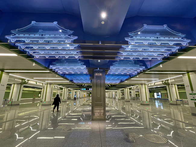 在車站裝修方面,地鐵19號線車站在裝修設(shè)計(jì)中突出“薈萃京華”的總體設(shè)計(jì)概念,在車站風(fēng)格中體現(xiàn)北京傳統(tǒng)與現(xiàn)代精華,全線站廳通道口、換乘通道及站臺樓扶梯三角房處以突出導(dǎo)向性和識別性為原則進(jìn)行重點(diǎn)裝修。以“鳳凰于飛—鳳祥燈會”為設(shè)計(jì)主題的新發(fā)地站、繪有“雙鯉戲水”的積水潭站、加入牡丹和景泰藍(lán)元素的牡丹園站……乘客可在各站感受到多元化的“地鐵藝術(shù)”。