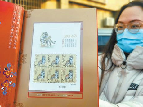 虎年生肖郵票一套兩枚,分別為國運(yùn)昌隆、虎蘊(yùn)吉祥。本報記者 吳鏑攝