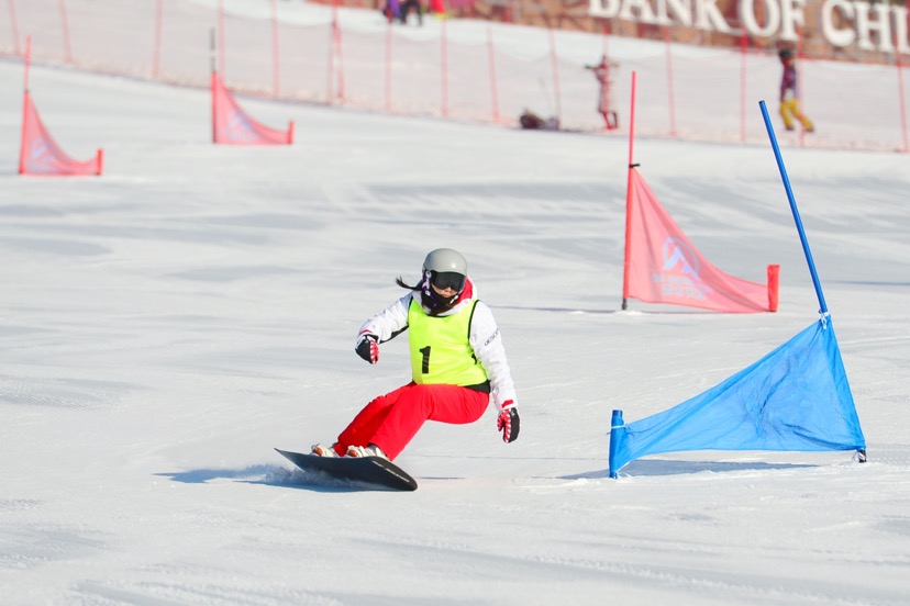 當(dāng)天上午9點(diǎn)20分,大眾滑雪組單板滑雪大回轉(zhuǎn)比賽正式開始。賽場(chǎng)上,選手們速度與技巧的完美結(jié)合,博得了在場(chǎng)觀眾陣陣喝彩。隨后進(jìn)行的高山滑雪大回轉(zhuǎn)比賽也同樣精彩。選手迅速?zèng)_出起點(diǎn),雙手緊握雪杖用力后撐,加速向前滑行,靈巧地在賽道上轉(zhuǎn)變滑行方向,從一個(gè)個(gè)旗門中輕巧地回轉(zhuǎn)而過,每一次急停和回轉(zhuǎn),都濺起一簇簇潔白的雪花。
