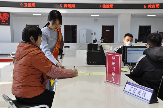 遷安市社會治理綜合服務中心工作人員引導群眾填表。 商立超攝