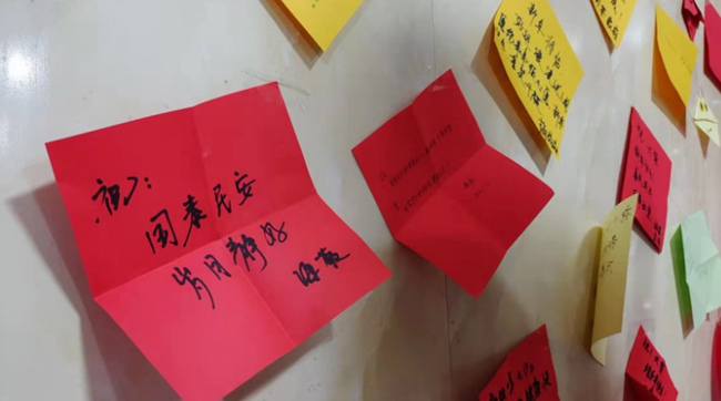 一句句溫馨的祝福寫下新年的期盼。 王靜攝