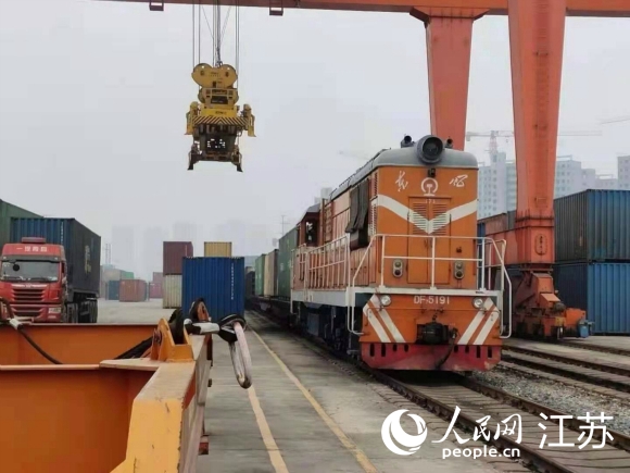 人民網(wǎng)徐州1月25日電 25日凌晨,伴隨著火車鳴笛聲,搭載100標(biāo)箱1236余噸貨物的中歐(亞)班列從徐州銅山站緩緩駛出,標(biāo)志徐州銅山中歐(亞)班列正式首航。