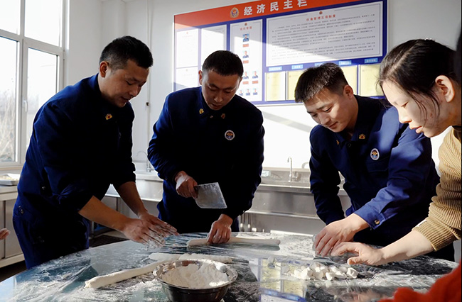 一起包餃子。 濰坊諸城市消防救援大隊(duì)供圖
