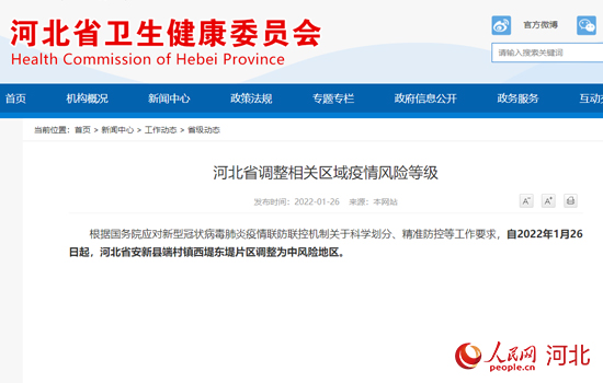 河北省調(diào)整區(qū)域疫情風(fēng)險(xiǎn)等級 安新縣1地為中風(fēng)險(xiǎn)地區(qū)
