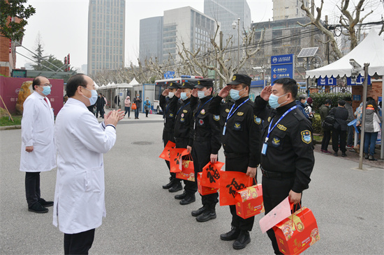 胸科醫(yī)院院領(lǐng)導(dǎo)慰問保安崗一線工作人員(上海胸科醫(yī)院供圖)