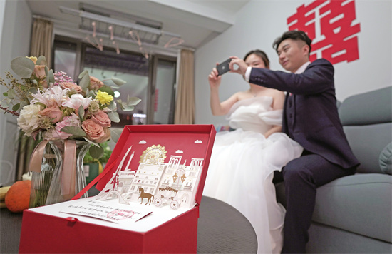 屠聰為與丈夫舉辦了只有兩個人的“婚禮”(上海電力供圖)