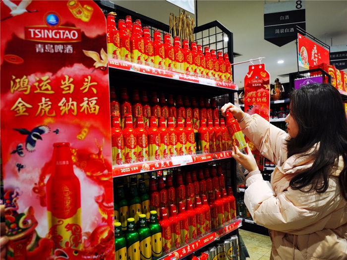 年味不僅是物質(zhì)上的豐富,也有文化上的追求?!斑^年就買‘鴻運(yùn)當(dāng)頭’,圖個好彩頭?!毕M(fèi)者王先生每年過年都會“鴻運(yùn)當(dāng)頭,先囤一波”,作為年夜飯的“必選項”?!澳暌癸埍仨毤t紅火火,不管是名字還是包裝,鴻運(yùn)當(dāng)頭就是喜慶,而且酒也好喝,每年還出不同的生肖版,我都收藏著著呢。”許多消費(fèi)者表示,這款青島啤酒成為春節(jié)當(dāng)之無愧的“鴻運(yùn)”年貨,走親訪友拎上一提,年味就出來了。