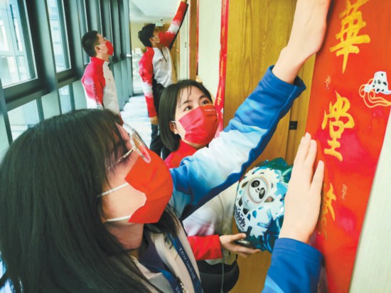 昨天上午,菲律賓、東帝汶、摩納哥、智利、馬達(dá)加斯加、法國共6個(gè)代表團(tuán)14人入境后進(jìn)村入住。下午,拉脫維亞、希臘、斯洛文尼亞、意大利、中國臺北等14個(gè)代表團(tuán)92人進(jìn)村。目前,村內(nèi)居民達(dá)到近800人。抵達(dá)當(dāng)天恰逢中國除夕,運(yùn)動員一進(jìn)村就感受到一個(gè)別樣的運(yùn)動員之家。各個(gè)居住組團(tuán)高高掛起中式六角造型宮燈,每間運(yùn)動員公寓也都貼上了對聯(lián),年味撲面而來。