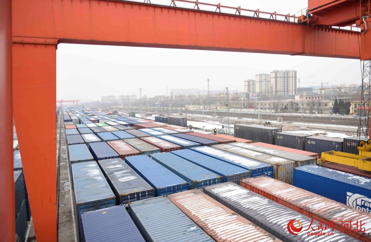 春節(jié)期間,石家莊國際陸港一片繁忙。 人民網(wǎng) 祝龍超攝