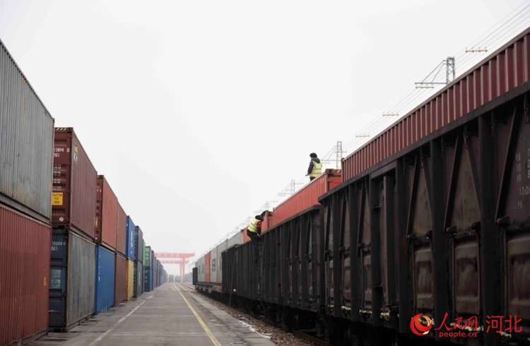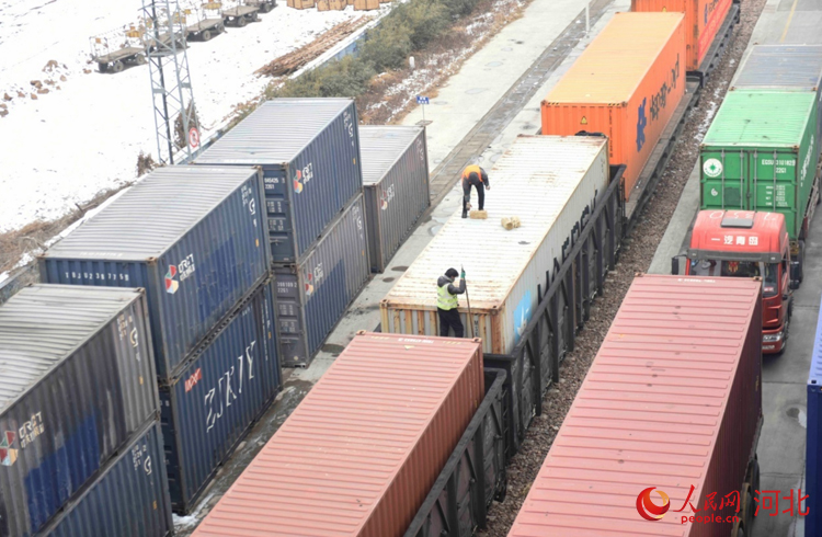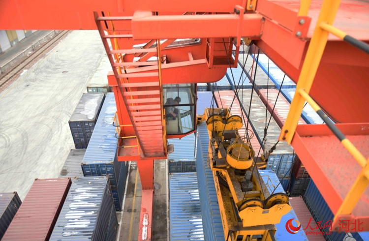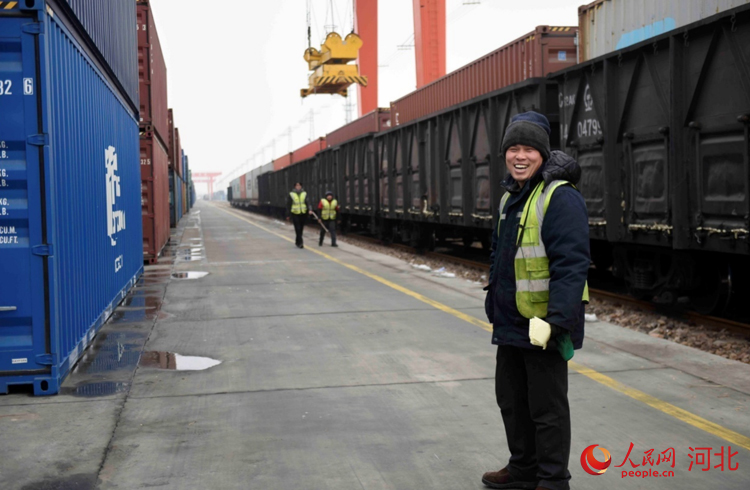 人民網(wǎng)石家莊2月2日電 (祝龍超)“再往前一點,右邊一點,好的?!?月2日9點,在地面作業(yè)人員的配合下,坐在30多米龍門吊駕駛室的滑恒旭穩(wěn)穩(wěn)地操作著龍門吊車將一個20多噸的集裝箱放到了貨運專列上。