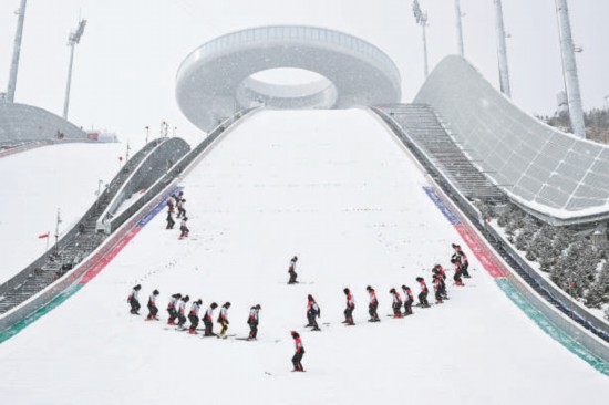 ——看文脈滄桑。雪中的現(xiàn)代化冬奧場(chǎng)館向世界講述著中國故事。首鋼滑雪大跳臺(tái)的曲線好似敦煌“飛天”的飄帶;國家高山滑雪中心的7條賽道如飛燕展翅,承載“吉祥”之意;國家雪車雪橇中心如巨龍臥于山下;國家跳臺(tái)滑雪中心則如同古代的玉如意擺件。在漫天飛雪中,我們看到了閃耀世界的中華文明。春雪之美,在樂享盛會(huì)。