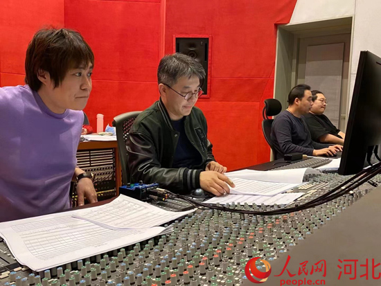 董剛(左一)在冬奧會前參與開幕式音樂錄制。 受訪者本人供圖