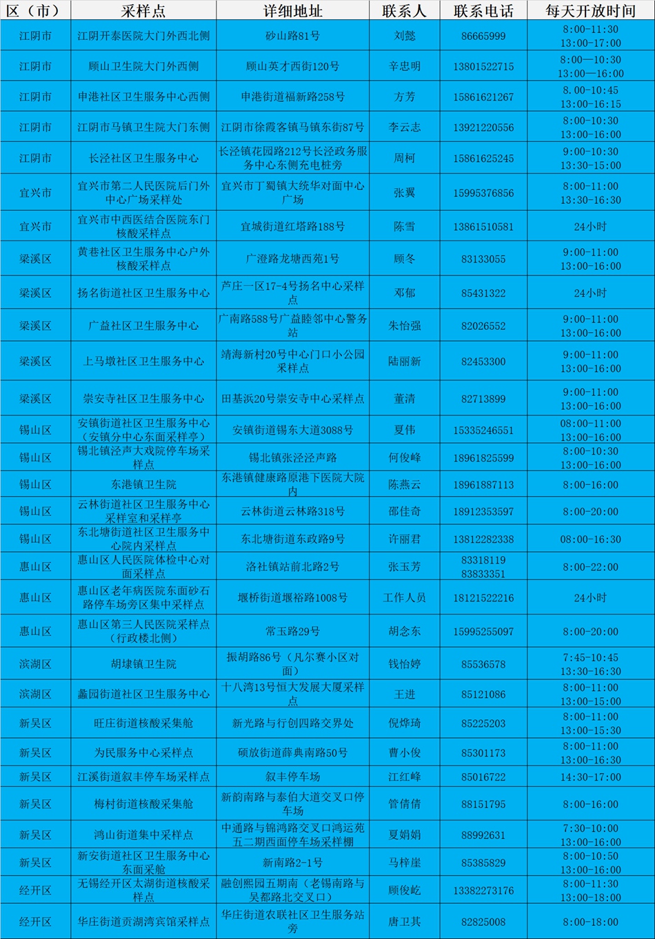 無錫市黃碼人員核酸檢測專窗點