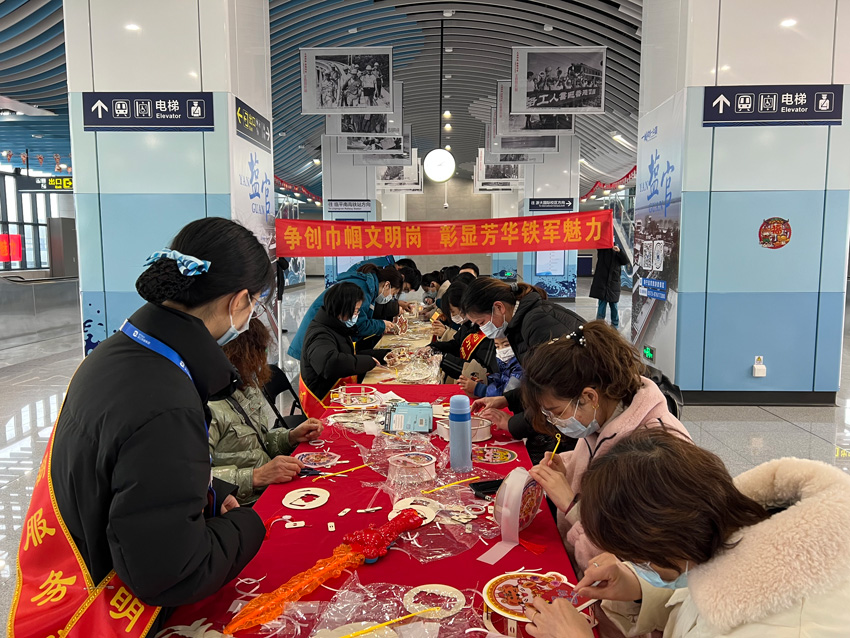 鬧元宵、扎虎燈、猜燈謎……節(jié)日里的杭海城際鐵路各車站熱鬧非凡。在張燈結(jié)彩的海寧海昌路站,工作人員熱情邀請乘客參加猜燈謎活動?;顒又?,乘客們有的凝眉思考,有的積極討論,歡歡喜喜猜著燈謎,為節(jié)日里增添了一份歡樂和喜悅。海寧鹽官站又是另一番歡樂的場景,工作人員親自動手,制作出一盞盞漂亮的虎燈,乘客們紛紛圍攏過來駐足觀看,希望在新的一年里贏得“好兆頭”,現(xiàn)場一片其樂融融,歡聲笑語。