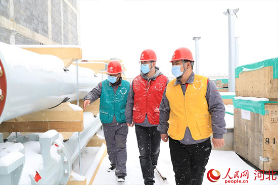 雄東500千伏變電站工程復工前項目管理人員對GIS設備存放區(qū)進行檢查。 王海軍攝