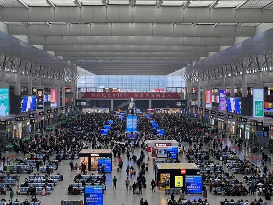 天寒地凍,但虹橋火車站溫暖如春。