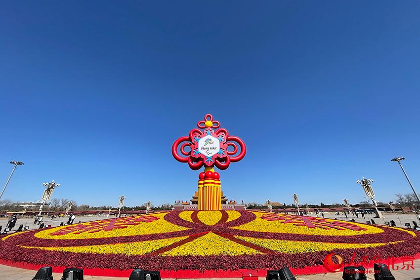 天安門廣場“精彩冬奧”主題花壇完成冬殘奧會(huì)會(huì)徽更換。人民網(wǎng) 尹星云攝