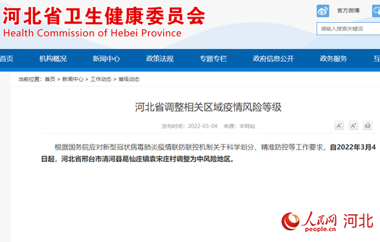 河北省調(diào)整相關(guān)區(qū)域疫情風險等級 清河縣1地調(diào)整為中風險地區(qū)