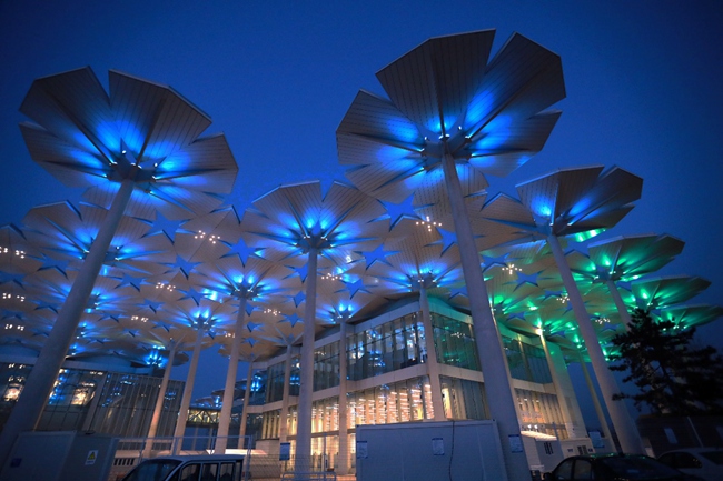 延慶冬殘奧頒獎(jiǎng)廣場(chǎng)前花傘被點(diǎn)亮。張慶玉攝