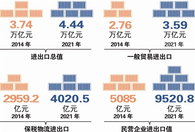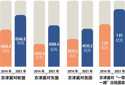 水深則魚悅,城強則賈興。從2014年至今,京津冀地區(qū)進出口規(guī)模連創(chuàng)新高,2019年首次超過4萬億元,2021年更是達到4.44萬億元。在此基礎上,搶抓RCEP帶來的政策紅利,京津冀外貿出口規(guī)模有望再上新臺階。(記者 張兆瑞)