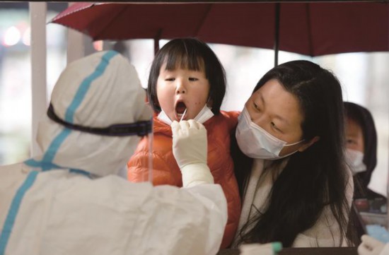 3月20日,在嘉興秀洲區(qū)新城街道核酸采樣點,市民們冒雨前來參加核酸檢測?,F(xiàn)場,有不少小朋友跟著家長參加檢測,面對和藹可親的醫(yī)護人員,小朋友們積極配合,一個個表現(xiàn)得特別勇敢。(馮玉坤)