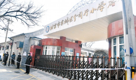東城區(qū)分司廳小學(xué)門口已經(jīng)拉起警戒線,學(xué)校暫時(shí)停課。本報(bào)記者 蔡代征攝