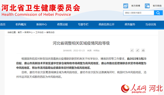 河北省調(diào)整相關(guān)區(qū)域疫情風(fēng)險(xiǎn)等級(jí)
