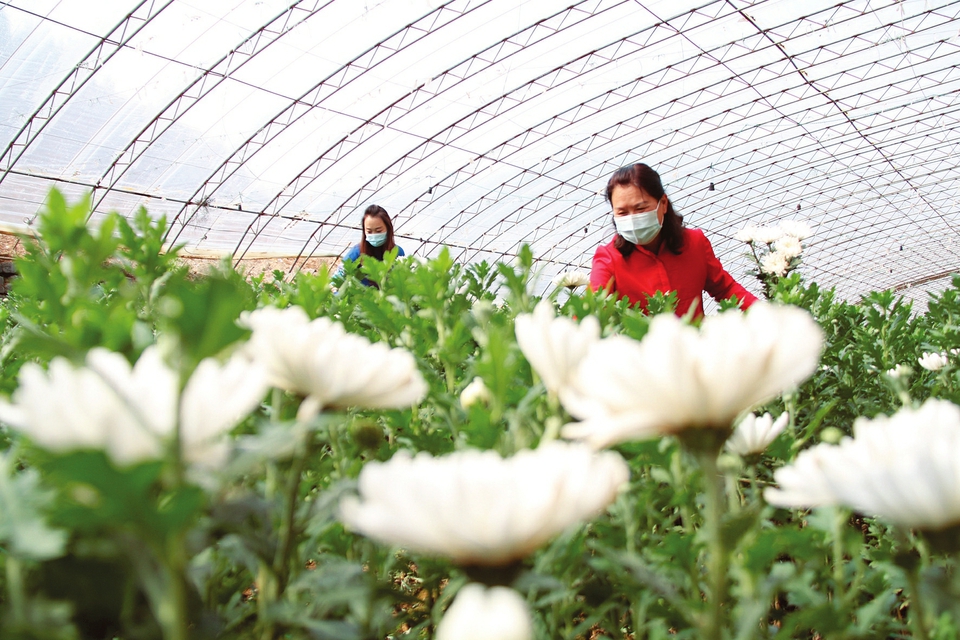 3月23日,游客在陽(yáng)城縣騰佳農(nóng)業(yè)開(kāi)發(fā)有限公司鮮花種植基地采摘白菊花。近日,該基地60余畝大棚白菊花進(jìn)入采摘期,吸引眾多游客前來(lái)參觀采摘。近年來(lái),陽(yáng)城縣依托“鮮花經(jīng)濟(jì)”,推進(jìn)農(nóng)業(yè)、林業(yè)與旅游等產(chǎn)業(yè)深度融合發(fā)展,形成以農(nóng)興旅、以旅促農(nóng)的良性發(fā)展模式。(陳來(lái)全攝)