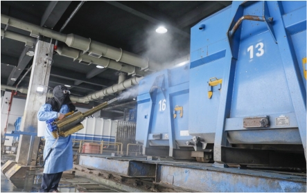東臺(tái)環(huán)衛(wèi)處對(duì)垃圾中轉(zhuǎn)站、環(huán)衛(wèi)車輛、果皮箱、公共廁所等進(jìn)行消殺大掃除,筑牢公共環(huán)境安全屏障。東臺(tái)市委宣傳部供圖