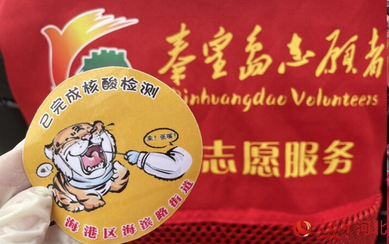 為了提高孩子們參與配合意識(shí),海濱路街道特意制作了“兒童專屬獎(jiǎng)勵(lì)貼紙”,發(fā)給完成檢測(cè)的孩子。貼紙上卡通小老虎檢測(cè)核酸的樣子很可愛(ài),孩子們領(lǐng)到貼紙,都一臉自豪地跟志愿者互相豎大拇指。