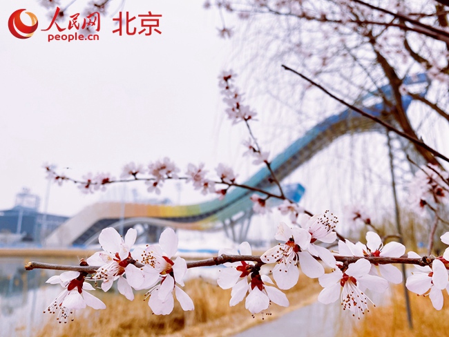 “太酷了!”專程來打卡的小郭一躍而起,與“雪飛天”來了個(gè)合影。還有的游客手舉可愛的冰墩墩和雪容融,以大跳臺(tái)和冷卻塔為背景拍下了照片。眼下,首鋼園群明湖畔的桃花已滿上枝頭,不少市民游客趕在這個(gè)季節(jié)前來一睹“雪飛天”的雄姿。
