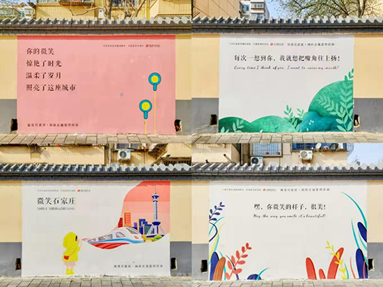 在此地的“微笑墻”主題壁畫,是由中共石家莊市委網(wǎng)信辦、石家莊市文明辦共同主辦的“微笑石家莊”網(wǎng)絡(luò)主題宣傳活動(dòng)的線下打卡地之一,繪畫匯集了各種石家莊的城市元素、溫暖的勵(lì)志話語(yǔ),定格于城市街頭。