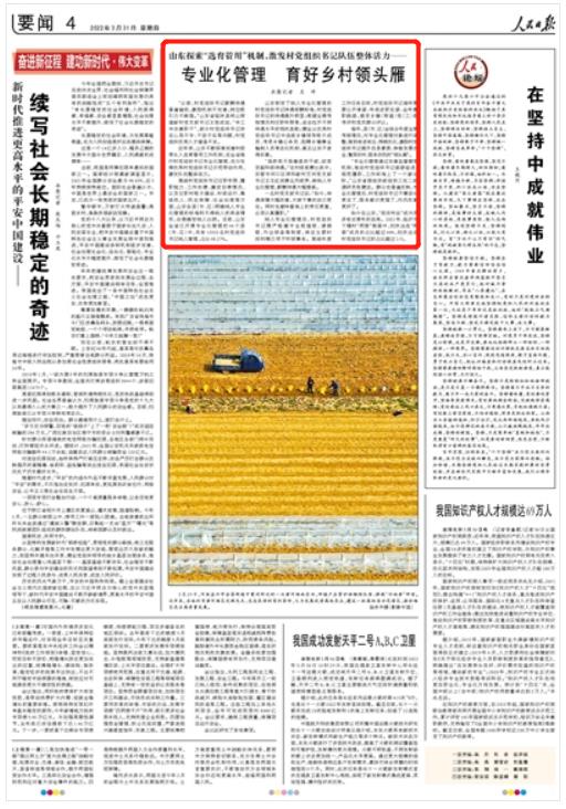 人民日?qǐng)?bào)點(diǎn)贊山東“選育管用”機(jī)制:專業(yè)化管理 育好鄉(xiāng)村領(lǐng)頭雁