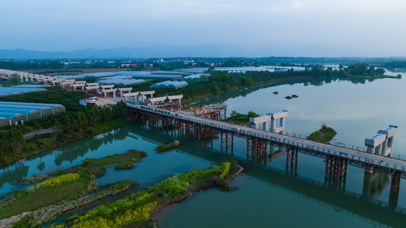 4月1日,在杭金衢高速公路改擴建二期新增衢江互通連接線重要節(jié)點跨衢江大橋,100多名工人在現(xiàn)場開展大橋梁板架設和主橋墩的圍堰施工。衢州地區(qū)3月24日解除疫情Ⅰ級響應相繼復工復學復市后,浙江省交通集團杭金衢改擴建二期項目第一時間復工,并于3月28日全部復工達產(chǎn)。