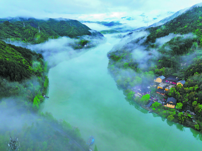 近日,多變的天氣使麗水云和湖出現(xiàn)“奇霧”景觀,沿岸的村莊、樹木、田野在清晨的薄霧中若隱若現(xiàn),猶如一幅朦朧的山水畫卷。(劉海波)