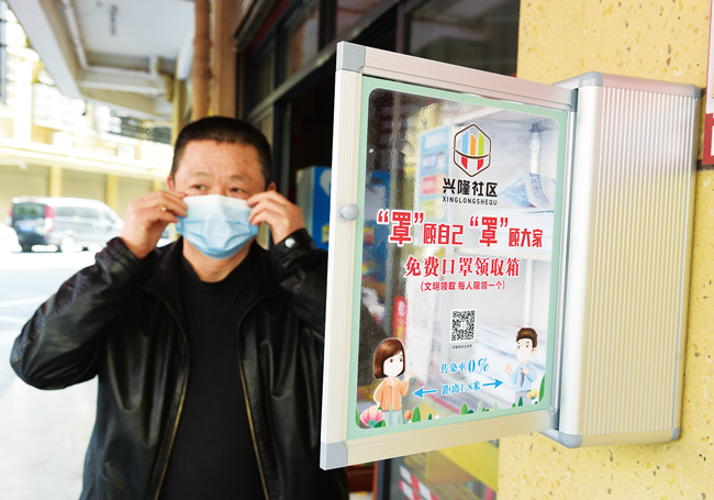 近日,浙江義烏福田街道興隆社區(qū)在轄區(qū)內(nèi)主干道出入口、人員密集的超市、藥店、快遞點(diǎn)等地設(shè)置免費(fèi)口罩領(lǐng)取箱,箱里放滿(mǎn)了口罩,箱體上寫(xiě)著“文明領(lǐng)取,每人限領(lǐng)一個(gè)”?;顒?dòng)開(kāi)展半個(gè)月以來(lái),6個(gè)免費(fèi)口罩領(lǐng)取箱共送出近6000個(gè)口罩。興隆社區(qū)黨委書(shū)記黃俊鋼表示,除了設(shè)立免費(fèi)口罩領(lǐng)取箱,社區(qū)還大力開(kāi)展佩戴口罩勸導(dǎo)活動(dòng)。(錢(qián)旭升)