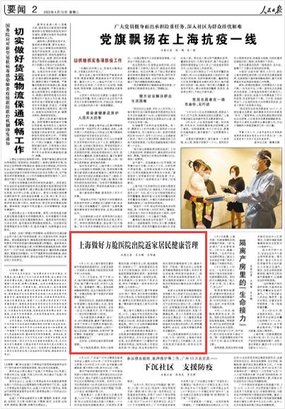 人民日報:上海做好方艙醫(yī)院出院返家居民健康管理
